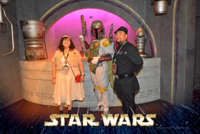 It was around 12:30AM by now, but just like the attractions, if you get in line before the park closes or in this case, before the event ends, you're good to go assuming the attraction doesn't break down or some other major issue. So we went into the Launch Bay hoping that Rey's line would be shorter and perhaps we could get our picture with her after all. The odds were on our side and her line was only about 25 minutes long! Just like the store, we saved ourselves about 100 minutes of waiting and still got the same result! I believe even Master Yoda would be pleased by our choices on this night...use our feelings, we did!