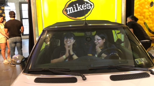 The party started immediately upon exiting the elevator with bright white painted walls accompanied by decorations of yellow Mike's Hard Lemonade charms and balloons. Music was playing and it was well air conditioned. When entering the main room, we were welcomed by more decorations, the smell of hot food and a bar which was serving several drinks all made with Mike's Hard Lemonade which were redeemable from the tickets we were given with our admission.
