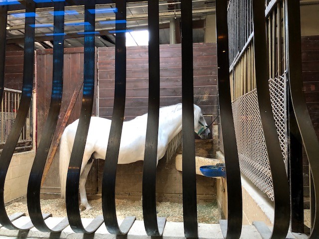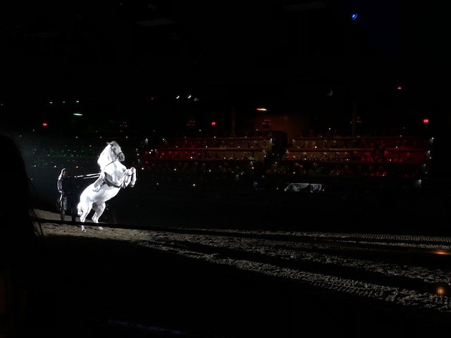 The viewing area of the horses is fun and includes a falcon or two, one of which will be used in the show to demonstrate falconry.
