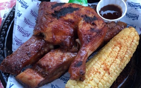 Our second meal, which was about 4 hours later was from a place called Fireman's Brigade BBQ. We all ordered the 1/4 chicken and ribs combo which came with choice of a baked potato or corn on the cob. Had we paid out of pocket, that would have cost us $16.99 each.